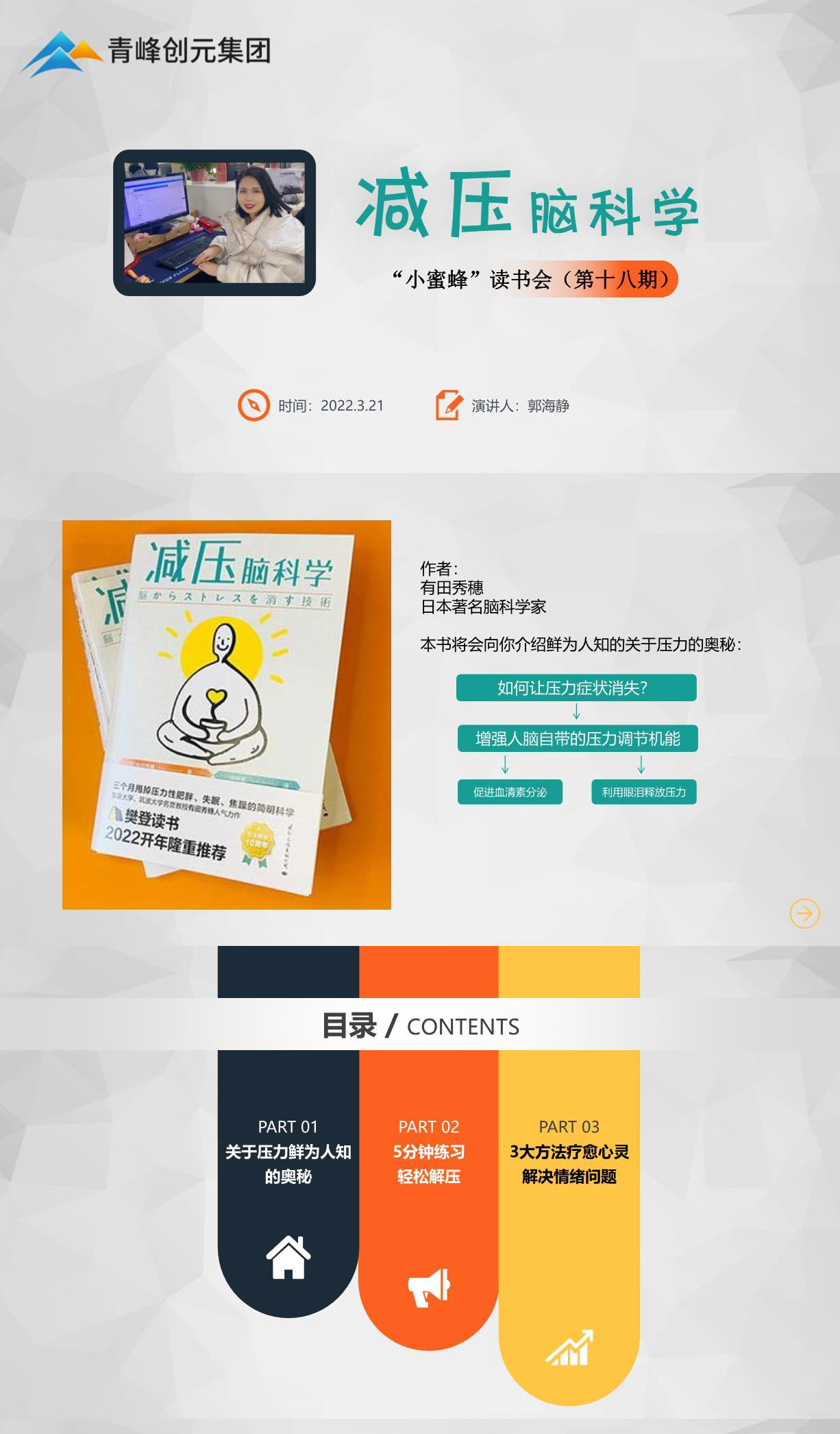 【青峰創(chuàng)元集團】“小蜜蜂”讀書會第十八期:《減壓腦科學》---郭海靜分享