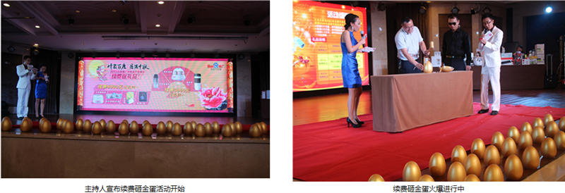 由于市場(chǎng)部和百度客服部的精心策劃和認(rèn)真籌備,本次答謝會(huì)在各環(huán)節(jié)上相比以往都做了創(chuàng)新和改進(jìn),“摸彩乒乓樂”活動(dòng)環(huán)節(jié)抓住了客戶心理,解決了客戶中途離場(chǎng)的難題,客戶中途離場(chǎng)率創(chuàng)造歷史新低。續(xù)費(fèi)砸金蛋送禮品環(huán)節(jié),更是把本次會(huì)議從一個(gè)高潮推向另一個(gè)高潮??头康耐聜儯脱鐣?huì)環(huán)節(jié)的節(jié)目也做了精心的準(zhǔn)備,使客戶在晚宴時(shí),既嘗到了菜肴的美味,又對(duì)精彩的節(jié)目表演贊嘆不已。