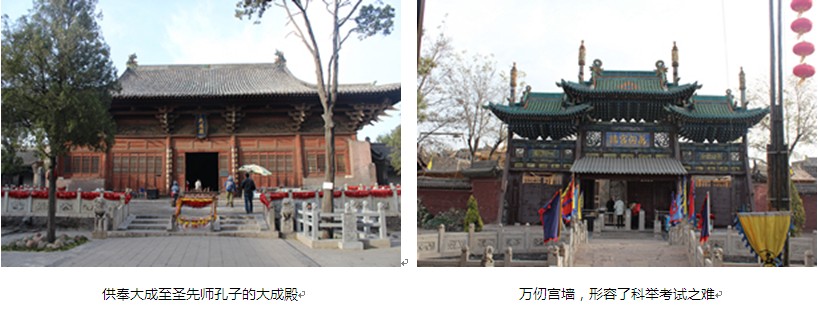 平遙文廟始建于唐貞觀初年,大成殿為金代重建,至今保持原貌,是我國現(xiàn)存各級文廟中歷史較久的殿宇,是全國文廟中不多的金代建筑。大成殿是文廟的心臟部位,供奉著大成至圣先師孔子的塑像。明倫堂,在大成殿后,是強化孔子儒教中的君臣、父子、尊卑等人倫關系的殿堂。據說,當年凡中狀元者要從東門城樓登上云路,然后再登魁星樓、文昌閣,經過云路坊(凌空而架,像云中虹橋),再跨進欞星門,經過狀元橋,再到大成殿祭拜孔子。