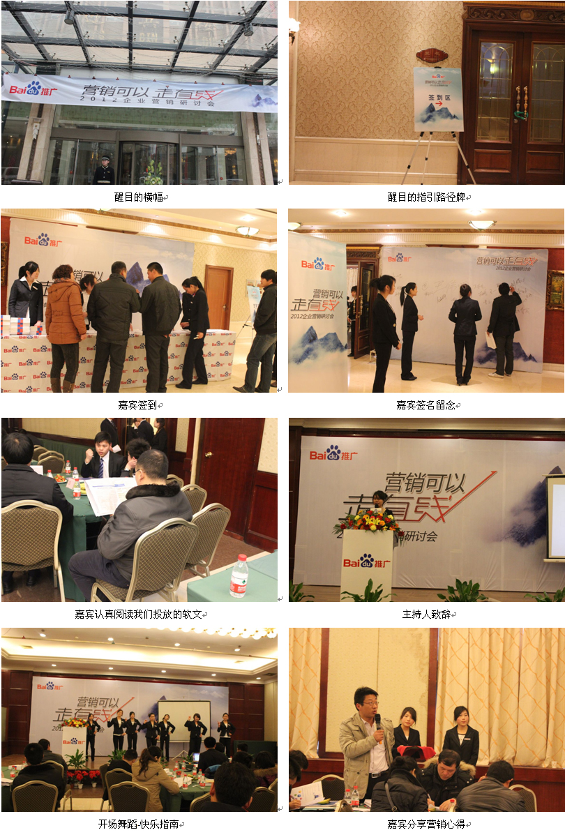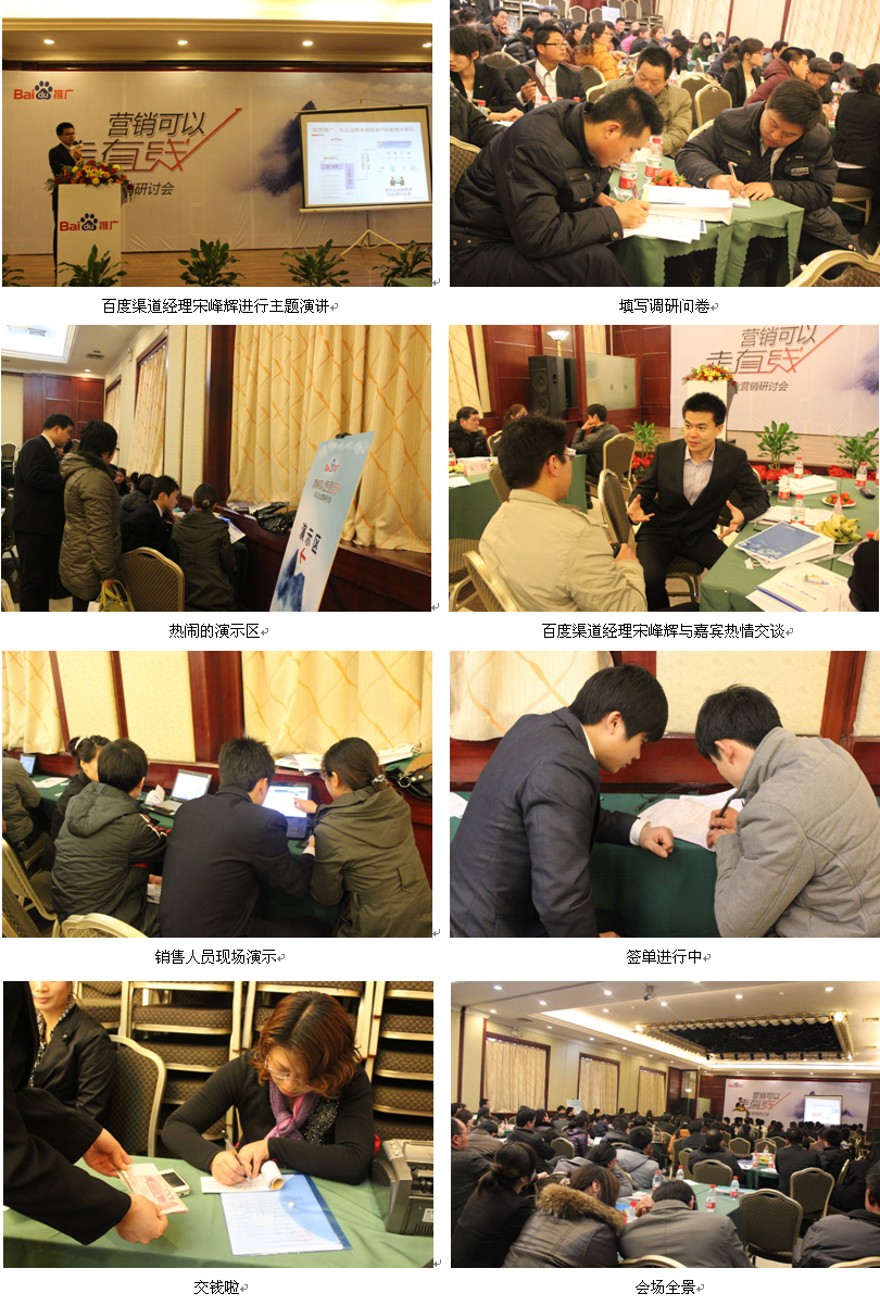 東風(fēng)好作陽和使,逢草逢花報(bào)發(fā)生。2012年3月15日,入春以來的首場(chǎng)會(huì)議-營銷可以走直線-2012企業(yè)營銷研討會(huì)在新鄉(xiāng)賓館召開。就在今天,一場(chǎng)綿綿細(xì)雨為久旱的新鄉(xiāng)送來了新的希望,為口渴的麥苗帶來了甘甜的雨水。百度,也為2012年春天的新鄉(xiāng)企業(yè)家?guī)砹诵碌臓I銷商機(jī)。下午兩點(diǎn)半,百位中小企業(yè)家們準(zhǔn)時(shí)來到會(huì)場(chǎng),聆聽這場(chǎng)2012中小企業(yè)營銷研討會(huì),為今年的網(wǎng)絡(luò)營銷開拓新的疆域。本次會(huì)議將由一位神秘的嘉賓進(jìn)行主講,他就是百度渠道經(jīng)理宋峰輝先生。 會(huì)議通過圖表的形式,直觀的向企業(yè)家們展示出了制約中小企業(yè)發(fā)展重要的難題-獲取新客戶的能力,圍繞這個(gè)問題進(jìn)行深入探討,從投入成本、覆蓋人群、效果評(píng)估等多方面得出結(jié)論,搜索引擎成為受歡迎的網(wǎng)絡(luò)營銷平臺(tái)。會(huì)后,嘉賓久久不愿離開,針對(duì)自己企業(yè)的營銷難題與我們的營銷人員共同探討解決方案,會(huì)場(chǎng)氣氛非常熱烈,本次會(huì)議的會(huì)后洽談時(shí)間創(chuàng)歷史新高,持續(xù)一個(gè)半小時(shí)。還是那句話,生意好,客戶多,就上百度搜索營銷。