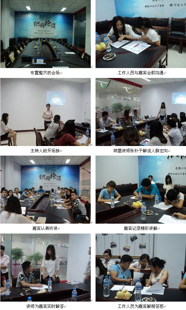 2011年8月5日第四期織網(wǎng)論道活動(dòng)在青峰網(wǎng)絡(luò)公司會議室舉行,對每個(gè)環(huán)節(jié)我們都做了精心的準(zhǔn)備,下午兩點(diǎn)半,嘉賓陸續(xù)來簽到。本次活動(dòng)主要是探討人群定向如何幫助客戶鎖定意向客戶,網(wǎng)盟講師張樸予通過實(shí)際案例讓嘉賓們深入了解了人群定向的口號“凡失去 必找回”,使嘉賓們認(rèn)識到人群定向二次影響意向客戶功能對成交的重要性。