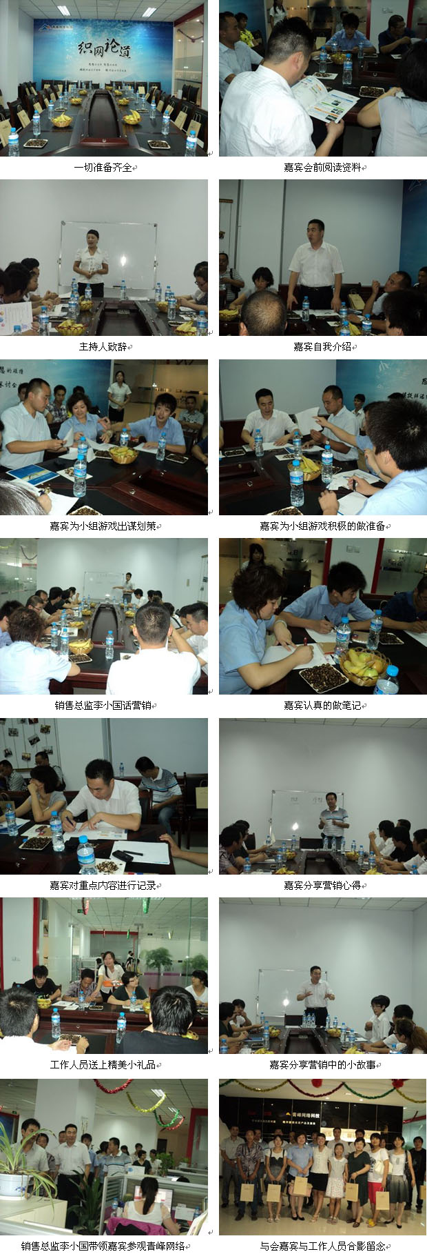 2011年7月30日,由青峰網(wǎng)絡(luò)組織的第三期織網(wǎng)論道會(huì)議如期舉行,下午兩點(diǎn)鐘,陸續(xù)有嘉賓到場,在到來途中偶遇的嘉賓們索性結(jié)伴同行,讓原本的陌生人逐漸熟悉了起來,頓時(shí)公司的會(huì)議室變的“活”了起來,不時(shí)的傳出嘉賓與銷售人員、嘉賓與嘉賓愉快的笑聲。下午三點(diǎn),隨著主持人的宣布,會(huì)議正式開始。本次會(huì)議由銷售總監(jiān)李小國先生擔(dān)任主講,與嘉賓們共同探討中小企業(yè)的營銷之道—淺談互聯(lián)網(wǎng)的發(fā)展和企業(yè)發(fā)展之間的關(guān)系。