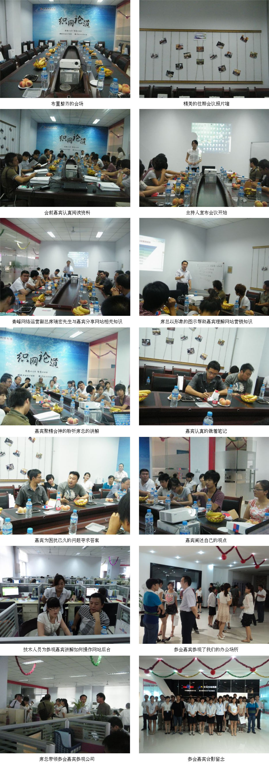 2011年7月15日,以“織網(wǎng)論道”為主題的第一期俱樂(lè)部會(huì)議在青峰網(wǎng)絡(luò)公司會(huì)議室召開(kāi),下午兩點(diǎn)鐘,嘉賓們陸續(xù)來(lái)到會(huì)場(chǎng),看著裝飾一新的會(huì)議室,對(duì)這種別開(kāi)生面的形式非常好奇,不斷向工作人員了解會(huì)議“內(nèi)幕消息”,兩點(diǎn)半,在客戶(hù)的翹首期盼中,主持人宣布會(huì)議正式開(kāi)始。