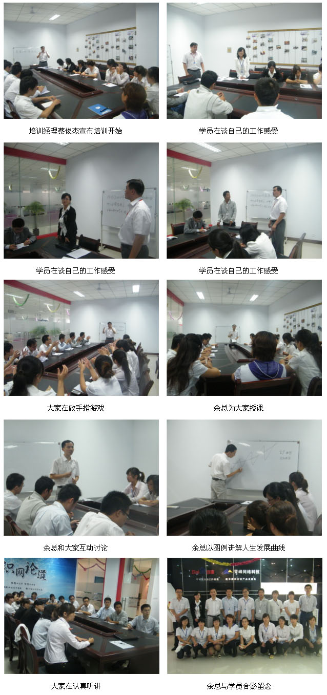 會議開始,培訓(xùn)經(jīng)理蔡俊杰首先恭喜大家能成為青峰大家庭的正式成員,對大家取得的優(yōu)異成績表示祝賀,同時提出,轉(zhuǎn)正以后要以更高的目標(biāo)要求自己,更好的狀態(tài)投入工作,隨后帶領(lǐng)大家一起討論入職這段時間自己的工作感受和希望得到的公司或部門哪方面的支持,最后,青峰網(wǎng)絡(luò)科技有限公司總經(jīng)理余進(jìn)先生親自為轉(zhuǎn)正學(xué)員授課,深入淺出的為學(xué)員剖析人生發(fā)展曲線,如何達(dá)成自己的目標(biāo),內(nèi)部思想統(tǒng)一等。