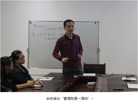 10月20日上午,余總在新鄉(xiāng)“織網(wǎng)論道”會(huì)議室為新鄉(xiāng)地區(qū)主管及部分優(yōu)秀員工做了一期“你離經(jīng)理有多遠(yuǎn)”的培訓(xùn)。在培訓(xùn)中,余總針對(duì)管理者的思想高度、胸懷及用心三個(gè)方面進(jìn)行了論述。