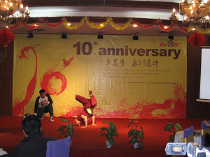 1月15日下午15:30分,“十年蓄勢(shì) 再創(chuàng)輝煌”—百度客戶答謝會(huì)在洛陽(yáng)京安牡丹城酒店隆重舉行。會(huì)間,不僅客服為來(lái)賓做精彩節(jié)目表演助興,更有百度優(yōu)秀客戶帶來(lái)的熱辣街舞表演,讓嘉賓們感受到時(shí)尚的潮元素,把答謝會(huì)推向了高潮。