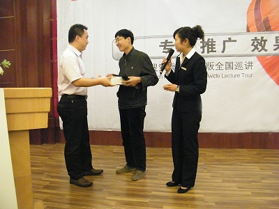 百度服務(wù)管理部區(qū)域經(jīng)理張弦先生為獲獎(jiǎng)來賓頒獎(jiǎng)