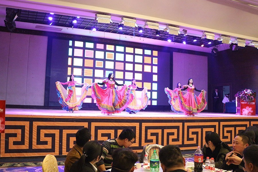 答謝會下半場開始,可愛的姑娘們帶來開場舞“大擺裙”表演