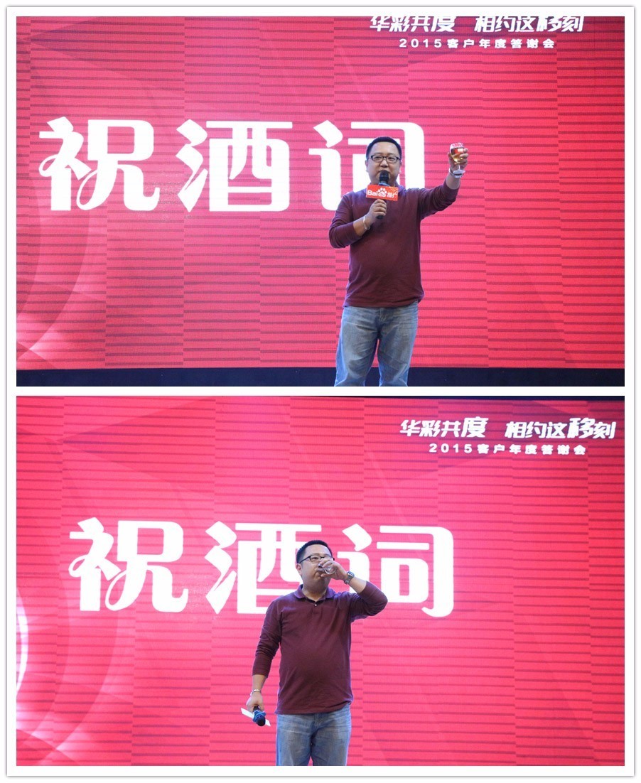 郭曉鵬先生致祝酒詞,希望來年各位客戶能和百度愉快合作,也希望客戶朋友們能借助百度生意越做越好!